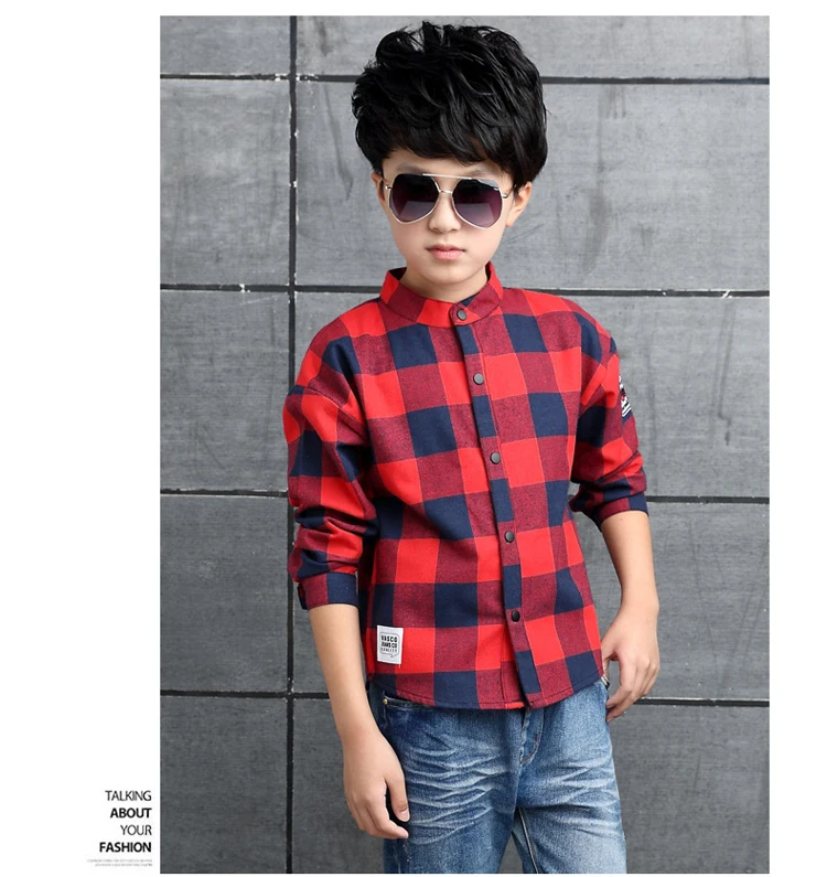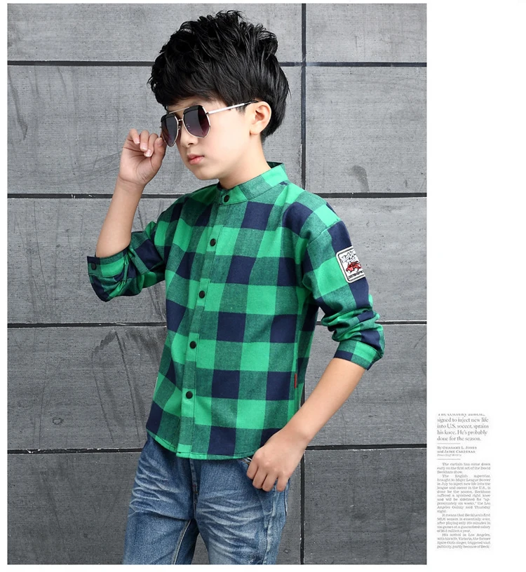 ActhInK Big Boys Plaid Dress Shirt Gentle Boys 95% Cotton Patchwork Casual Shirts Brand Kids Korean Clothes Spring Outwear