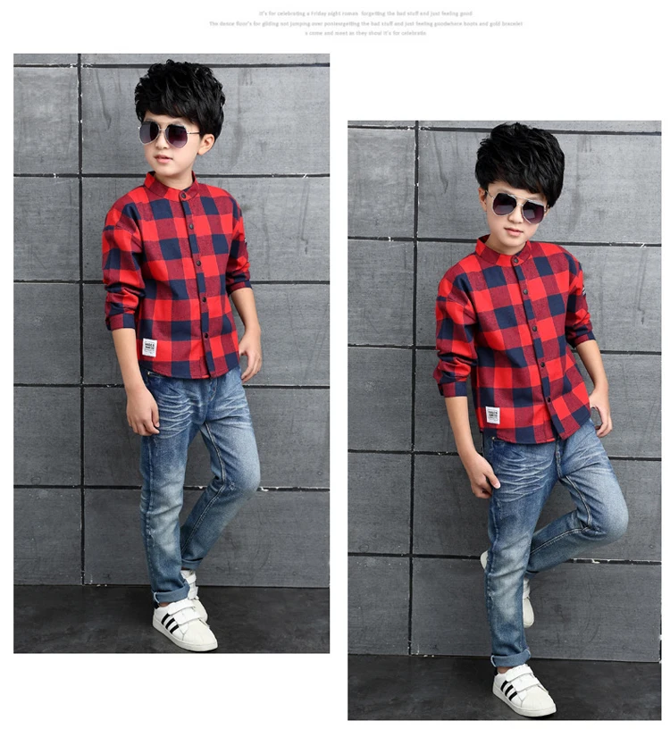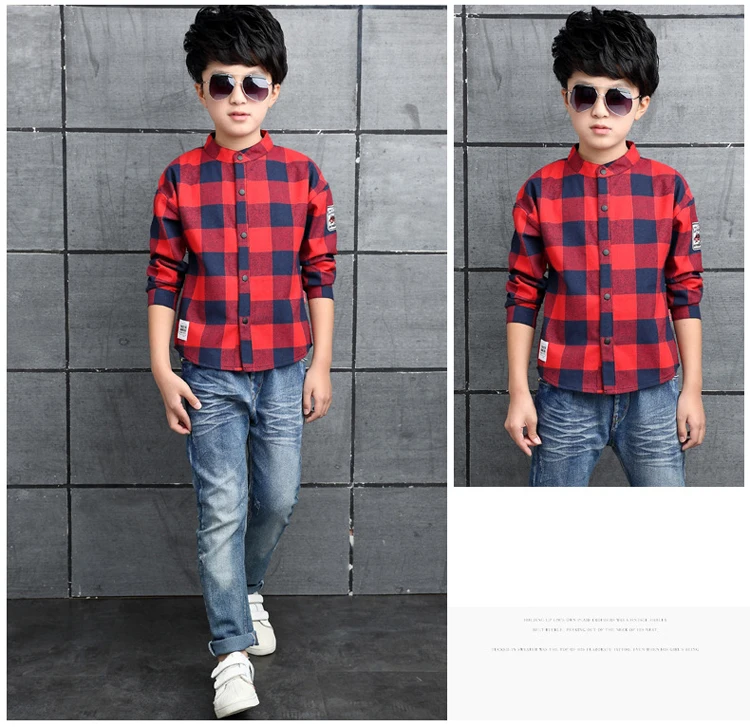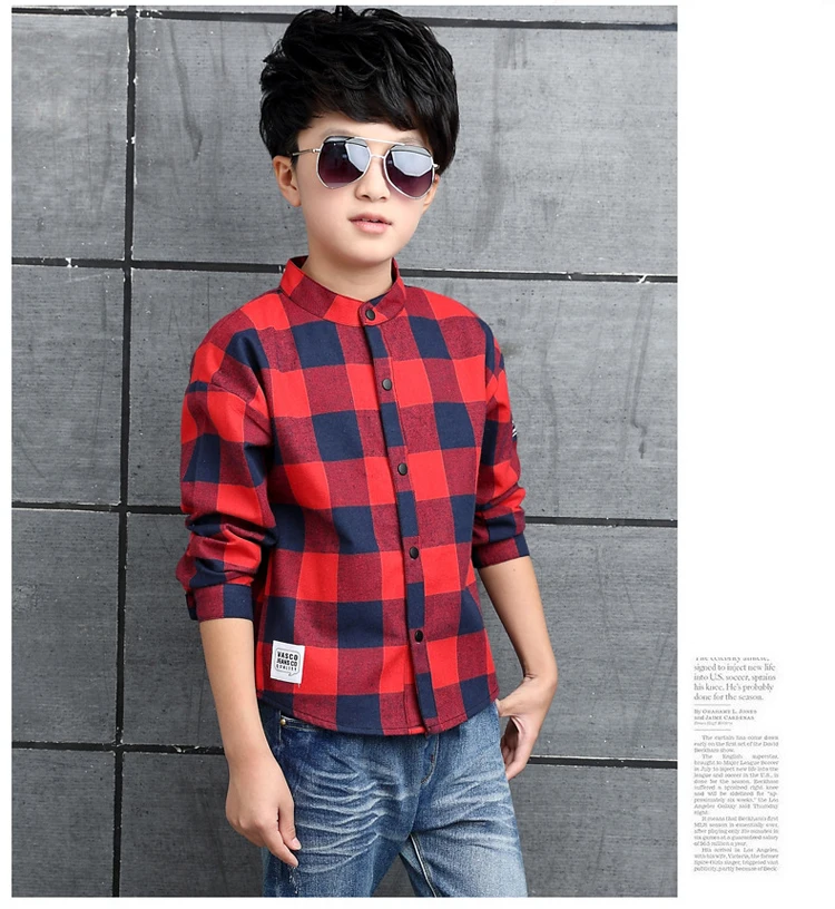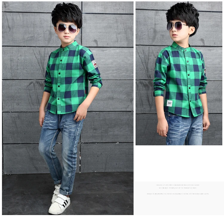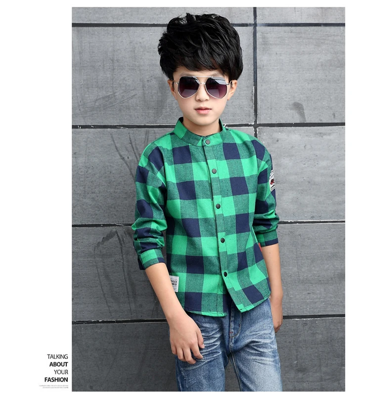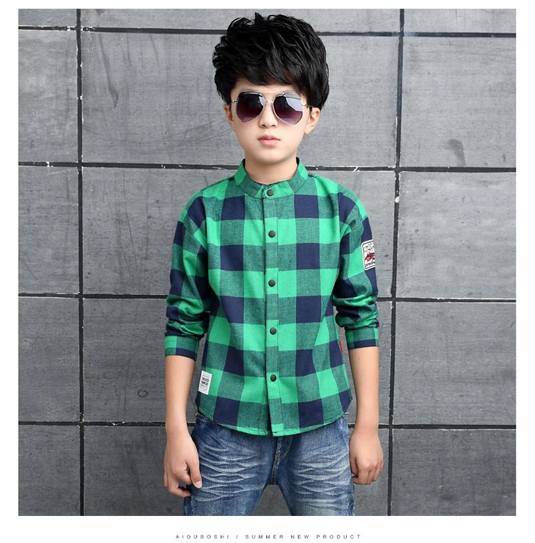 ActhInK Big Boys Plaid Dress Shirt Gentle Boys 95% Cotton Patchwork Casual Shirts Brand Kids Korean Clothes Spring Outwear