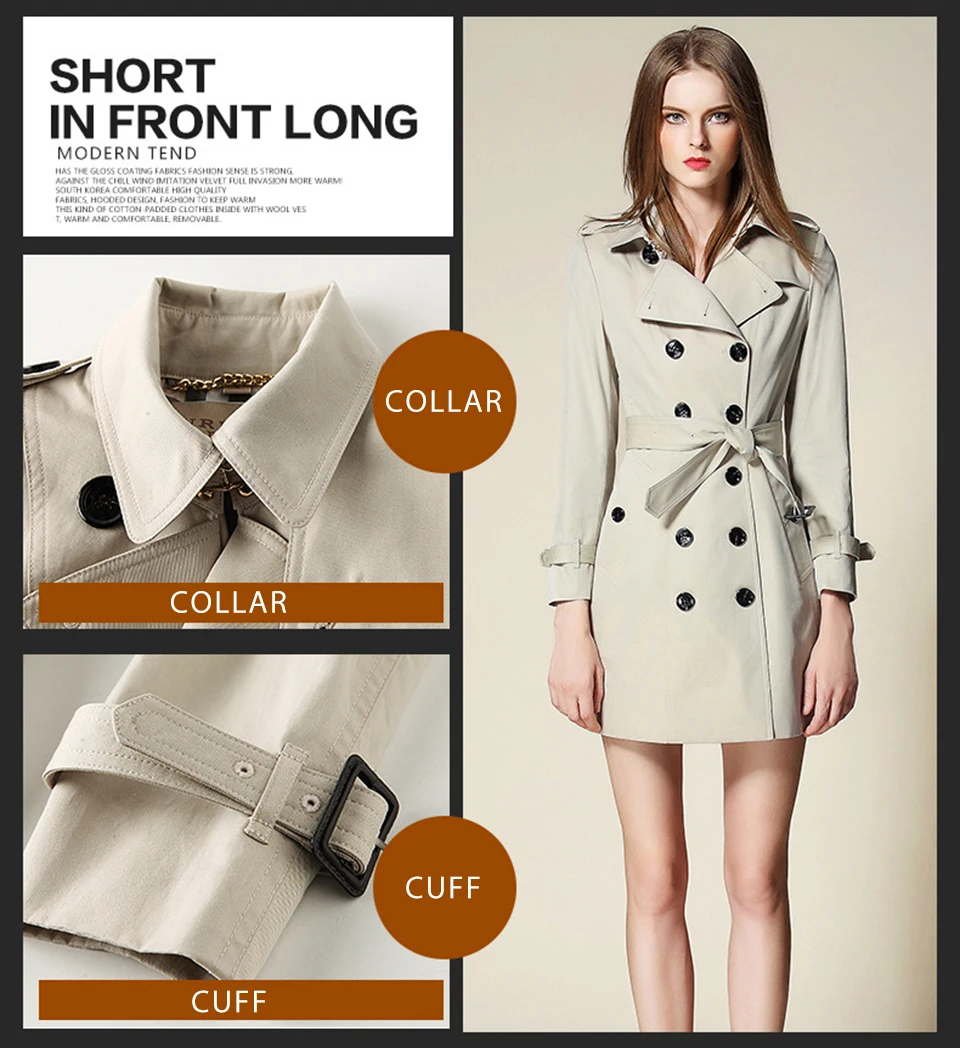 Winter Long Trench Coat For Women Autumn Plus Size Women Trench Outerwear Coat Double Breasted Abrigos Mujer Elegantes