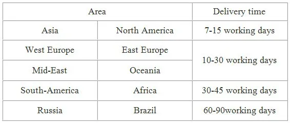Notice: Holidays and weekend are not included in the working days.Just for reference only.