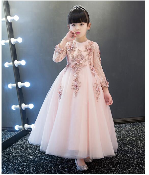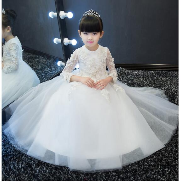 Girls Pageant Long Formal Dresses 2020 Autumn Winter Long Sleeve Gauze Gowns Flowers Girls Princess Tutu Dress Kids Party Wedding Dresses Dancewear 3-12Y , the dress have size:100-110-120-130-140-150-160 all in stock , if you would like to buy big size please under the order make which size.