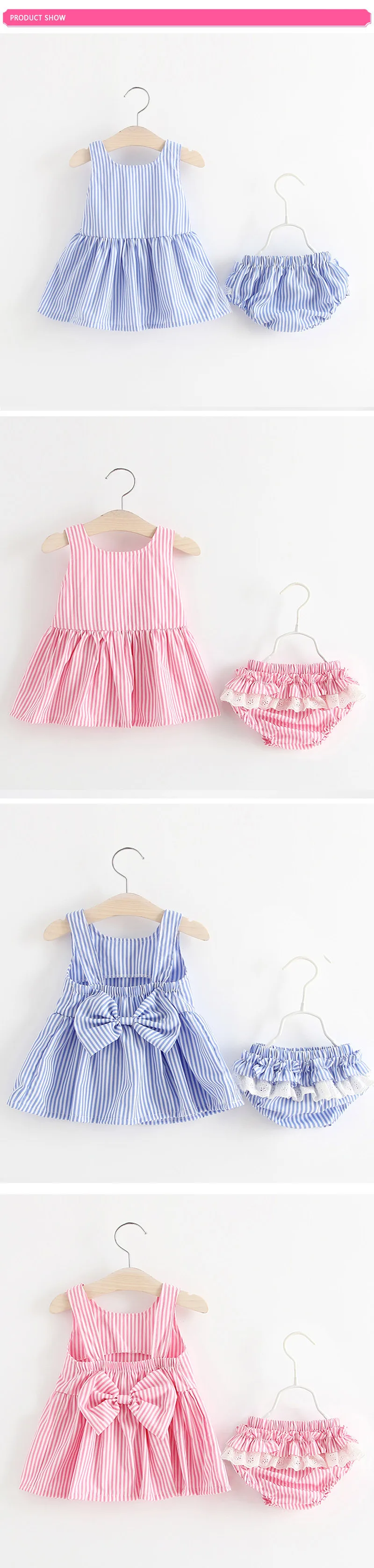 New Baby Girl Summer Sets Striped Backless Bowknot