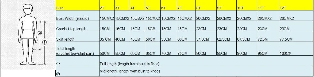 Please choose the right size according to your girl length from Bust to the knee or the floor , such as